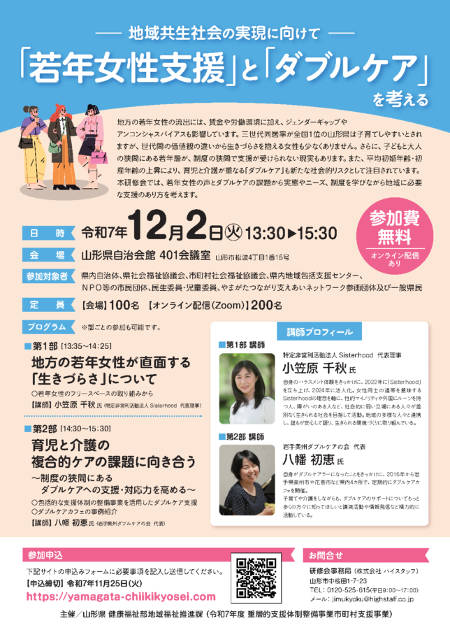 地域共生社会の実現に向けた研修会(山形県主催)でダブルケアのお話をさせていただきました。